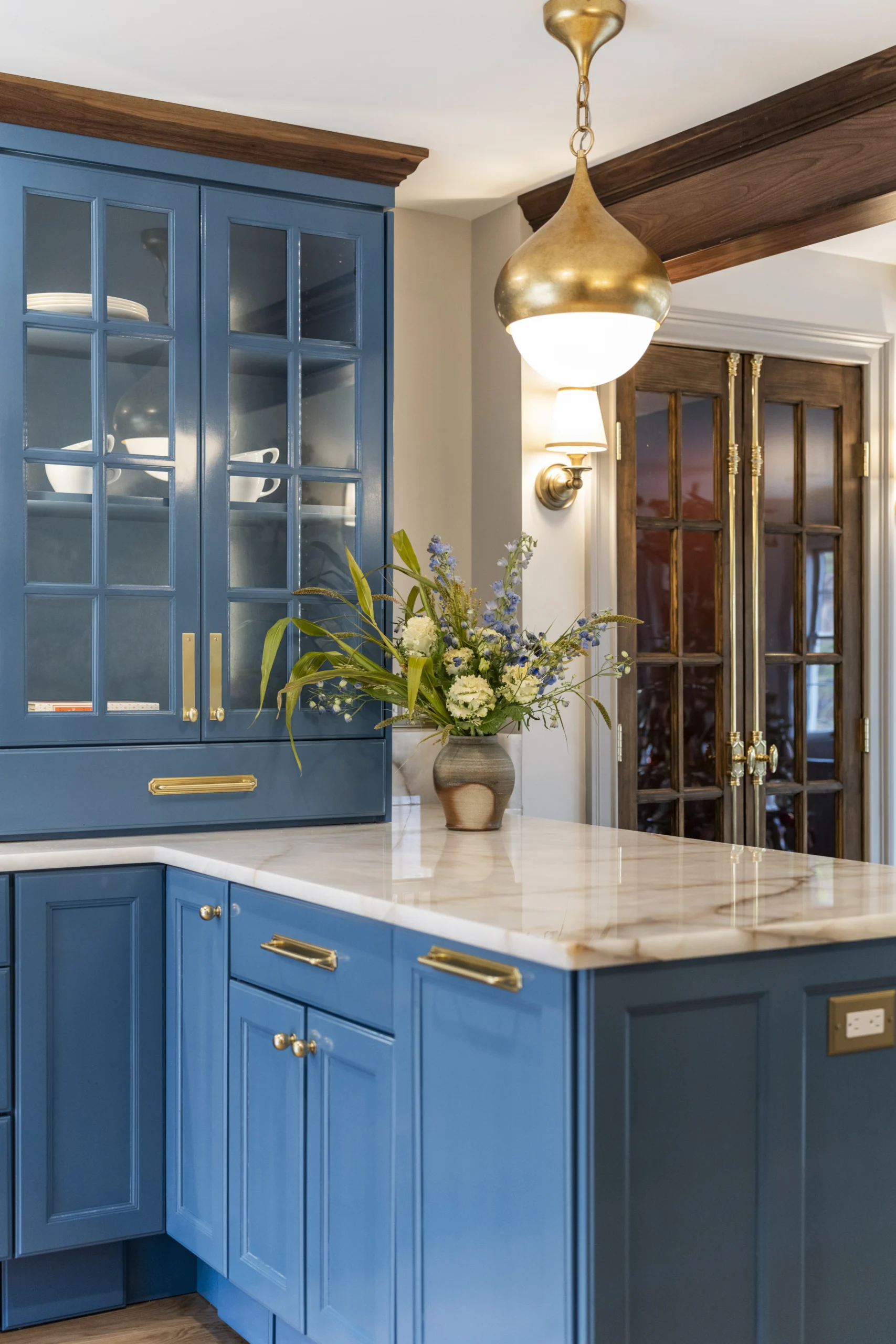 A phased remodel with bold blue cabinetry and timeless finishes.